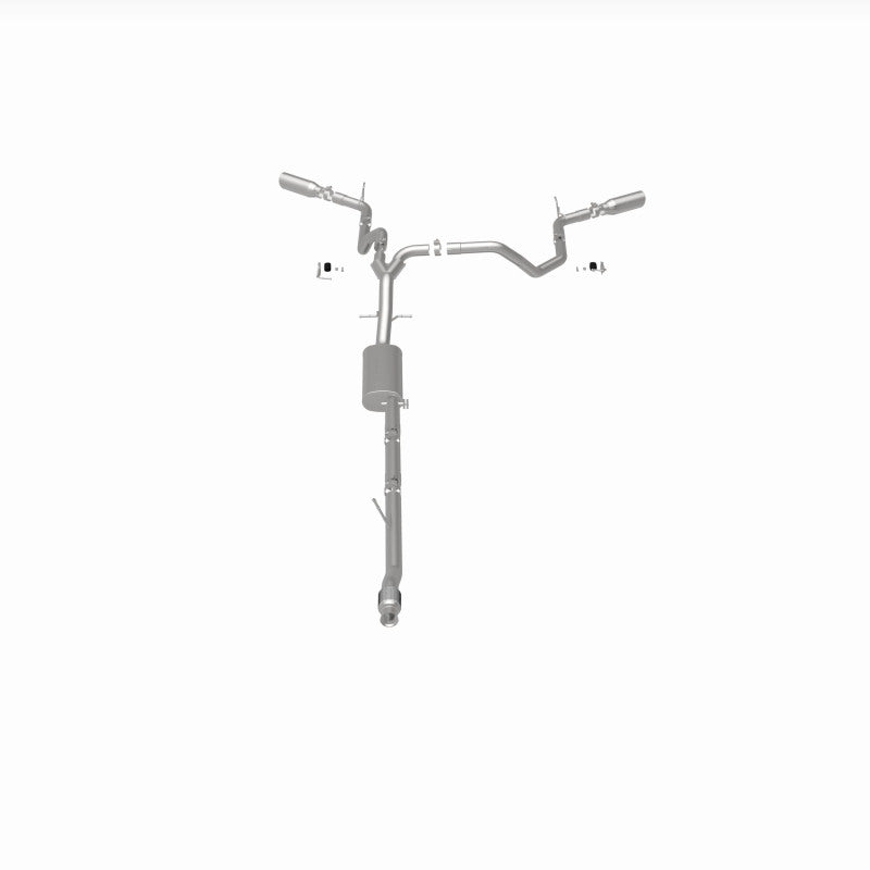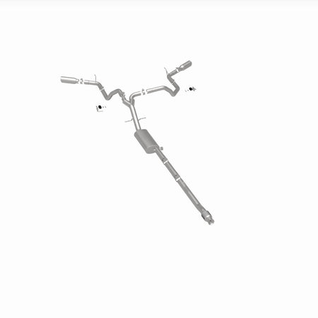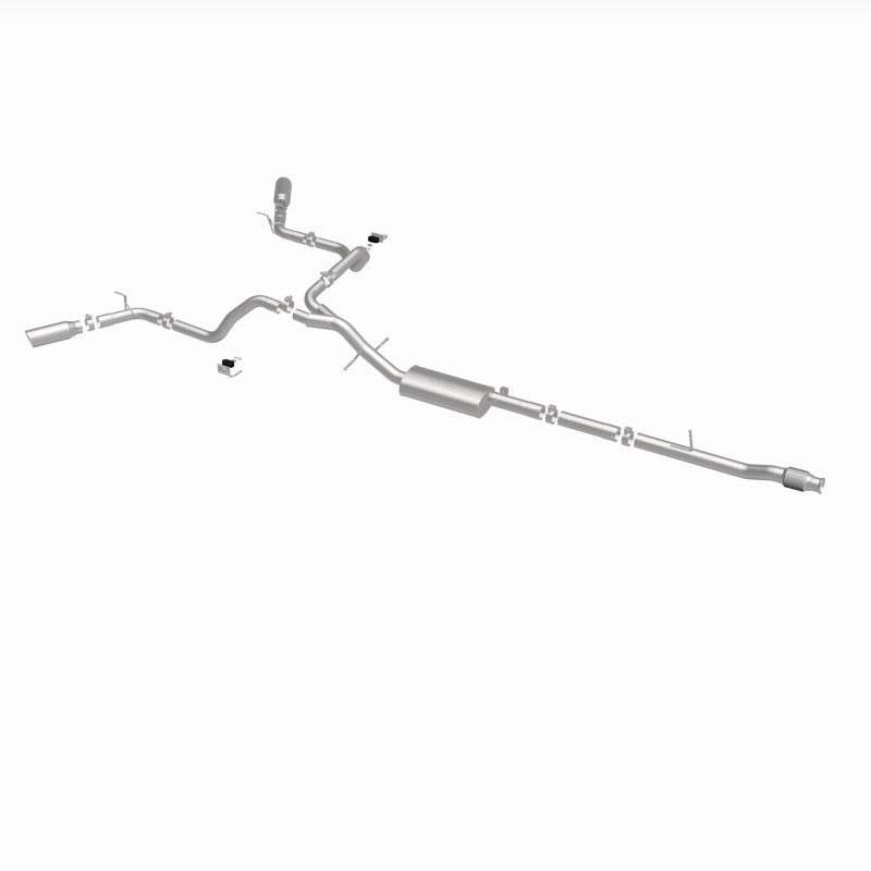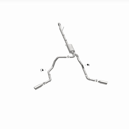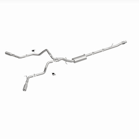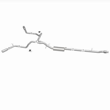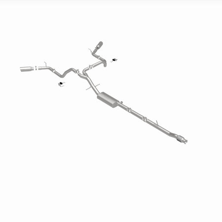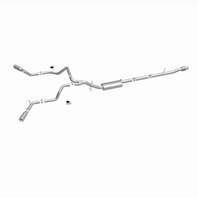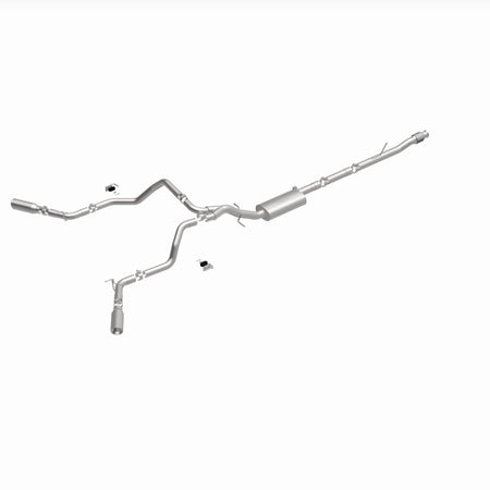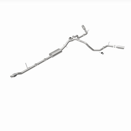 The MagnaFlow Street Series Cat-Back Performance Exhaust System 19473 brings out the personality of your Truck with our signature resonant, powerful engine tone and dyno-proven performance. Thanks to its fast-flowing, mandrel bent 3in. main piping and 1 Straight-Through mufflers ending in a Dual Split Rear Behind Rear Tires exit with 4in. Polished Clamp-On Double Wall Angle Cut Rolled Edge tips, this Truck exhaust kit has the performance chops to match its sporty sound and appearance. Upgrade your ride to the next level with an exhaust that has the pipes to put other Truck's to shame. With this system your vehicle will be producing Aggressive exterior and Moderate interior sound levels while leaving other cars and trucks feeling envious at every stoplight. Exhaust kit 19473 features a cat-back layout that replaces your ride's stock exhaust components from near the catalytic converter on back. Extensive 3D scanning during development has resulted in a direct-fit design that you can easily install yourself. 19473 is produced using CNC precision robotic manufacturing techniques and is backed by MagnaFlow's 1-year limited finish warranty and limited lifetime construction warranty.