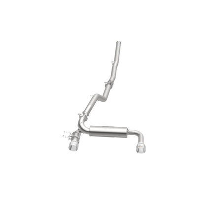 The MagnaFlow 2016-2018 Ford Focus Competition Series Cat-Back Performance Exhaust System brings an aggressive, attention-grabbing edge to the deep resonant exhaust note we're so well known for. This exhaust kit is designed to enhance your 2.3L 2016-2018 Ford Focus with dyno-proven performance made possible thanks to fast-flowing mandrel bent 3in. main piping and 1 Straight-Through mufflers ending in a Dual Split Rear exit with 4.5in. Polished Welded-On Double Wall Angle Cut Folded Edge tips featuring a sporty finish. The exhaust system's cat-back layout replaces your ride's exhaust system from near the catalytic converter on back. Exhaust system 19281 is engineered to make your vehicle's engine produce Aggressive exterior and Moderate interior sound levels, befitting its competition-oriented design. 19281's direct-fit design makes installation a breeze thanks to the use of advanced 3D scanning techniques. This performance exhaust system is made of 100% durable and corrosion-resistant stainless steel and produced using CNC precision robotic manufacturing, all backed by MagnaFlow's limited lifetime warranty. Please check to ensure compliance with local noise regulations.