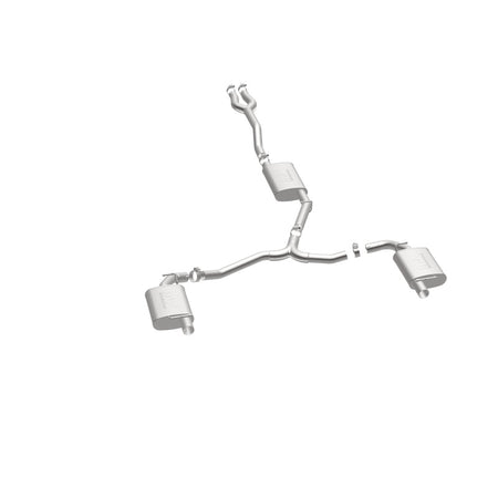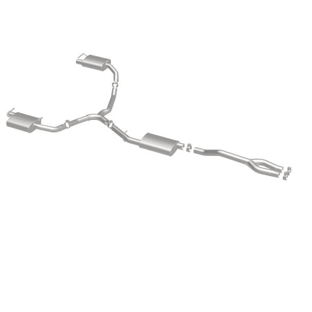 The MagnaFlow Street Series Cat-Back Performance Exhaust System 19225 brings out the personality of your Car with our signature resonant, powerful engine tone and dyno-proven performance. Thanks to its fast-flowing, mandrel bent 2.5in. main piping and 3 Straight-Through mufflers ending in a Dual Split Rear exit, this Car exhaust kit has the performance chops to match its sporty sound and appearance. Upgrade your ride to the next level with an exhaust that has the pipes to put other Car's to shame. With this system your vehicle will be producing Moderate exterior and Mild interior sound levels while leaving other cars and trucks feeling envious at every stoplight. Exhaust kit 19225 features a cat-back layout that replaces your ride's stock exhaust components from near the catalytic converter on back. Extensive 3D scanning during development has resulted in a direct-fit design that you can easily install yourself. 19225 is produced using CNC precision robotic manufacturing techniques and is backed by MagnaFlow's 1-year limited finish warranty and limited lifetime construction warranty.