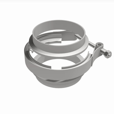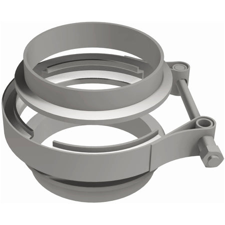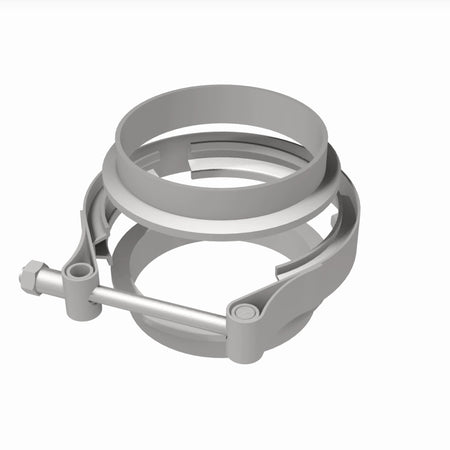 MagnaFlow offers stainless steel exhaust band clamps. Compared with conventional U-clamps and flat band clamps, these high torque clamps offer a much tighter seal by using a reaction block that transfers bolt torque into clamp strength assuring a tight seal.