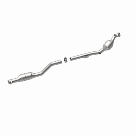 Keep the check engine light off with MagnaFlow HM Grade Federal/EPA Compliant Direct-Fit Catalytic Converter 24035. With features including free-flowing mandrel-bent tubing and highly corrosion resistant stainless steel construction, easily install this spun body converter yourself using the proper tools, no cutting or welding required. MagnaFlow's state-of-the-art metrology department uses the latest 3D scanning systems during research and development, so you can be confident that your new part will fit and function like the original equipment. By replicating the OE spun body design, the single laser fusion weld greatly reduces the possibility of a leak, and our compact, low-mass design also allows for greater thermal efficiency. This direct-fit catalytic converter is designed specifically for the 2001-2002 Mercedes-Benz E430 and interchanges with OE parts 210 490 82 20 80 and 210 490 82 20, among others. This replacement part is designed to meet or exceed Federal emissions requirements set forth by the EPA, complying with legal standards for OBDII Federally registered vehicles with Federal/EPA Emission systems.