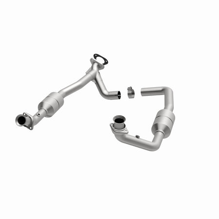 Keep the check engine light off with MagnaFlow HM Grade Federal/EPA Compliant Direct-Fit Catalytic Converter 24307. With features including free-flowing mandrel-bent tubing and highly corrosion resistant stainless steel construction, easily install this spun body converter yourself using the proper tools, no cutting or welding required. MagnaFlow's state-of-the-art metrology department uses the latest 3D scanning systems during research and development, so you can be confident that your new part will fit and function like the original equipment. By replicating the OE spun body design, the single laser fusion weld greatly reduces the possibility of a leak, and our compact, low-mass design also allows for greater thermal efficiency. Designed to fit the 2000-2003 Ford E-350 Super Duty, 2000-2002 Ford E-250 Econoline, and more, this direct-fit catalytic converter also interchanges with OE parts 1C2Z-5F250-BA and YC2Z-5F250-AA, among others. Avoid potential exhaust leaks by using the included gaskets to get a proper seal. This replacement part is designed to meet or exceed Federal emissions requirements set forth by the EPA, complying with legal standards for OBDII Federally registered vehicles with Federal/EPA Emission systems.