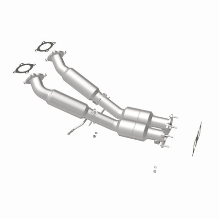 Keep the check engine light off with MagnaFlow OEM Grade Federal/EPA Compliant Direct-Fit Catalytic Converter 52276. With features including free-flowing mandrel-bent tubing and highly corrosion resistant stainless steel construction, easily install this spun body converter yourself using the proper tools, no cutting or welding required. MagnaFlow's state-of-the-art metrology department uses the latest 3D scanning systems during research and development, so you can be confident that your new part will fit and function like the original equipment. By replicating the OE spun body design, the single laser fusion weld greatly reduces the possibility of a leak, and our compact, low-mass design also allows for greater thermal efficiency. This direct-fit catalytic converter is designed specifically for the 2008-2012 Land Rover LR2. The included gaskets & hardware reduce the possibility of a leaking seal while avoiding the need to reuse corroded factory parts for installation. This replacement part is designed to meet or exceed Federal emissions requirements set forth by the EPA, complying with legal standards for OBDII Federally registered vehicles with California or Federal/EPA Emission systems.