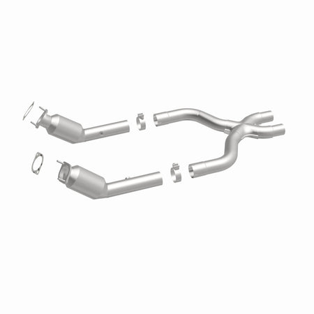 Keep the check engine light off with MagnaFlow OEM Grade Federal/EPA Compliant Direct-Fit Catalytic Converter 49976. With features including free-flowing mandrel-bent tubing and highly corrosion resistant stainless steel construction, easily install this spun body converter yourself using the proper tools, no cutting or welding required. MagnaFlow's state-of-the-art metrology department uses the latest 3D scanning systems during research and development, so you can be confident that your new part will fit and function like the original equipment. By replicating the OE spun body design, the single laser fusion weld greatly reduces the possibility of a leak, and our compact, low-mass design also allows for greater thermal efficiency. This direct-fit catalytic converter is designed specifically for the 2011-2014 Ford Mustang and interchanges with OE part BR3Z-5E212-C. Avoid potential exhaust leaks by using the included gaskets to get a proper seal. This replacement part is designed to meet or exceed Federal emissions requirements set forth by the EPA, complying with legal standards for OBDII Federally registered vehicles with California or Federal/EPA Emission systems.