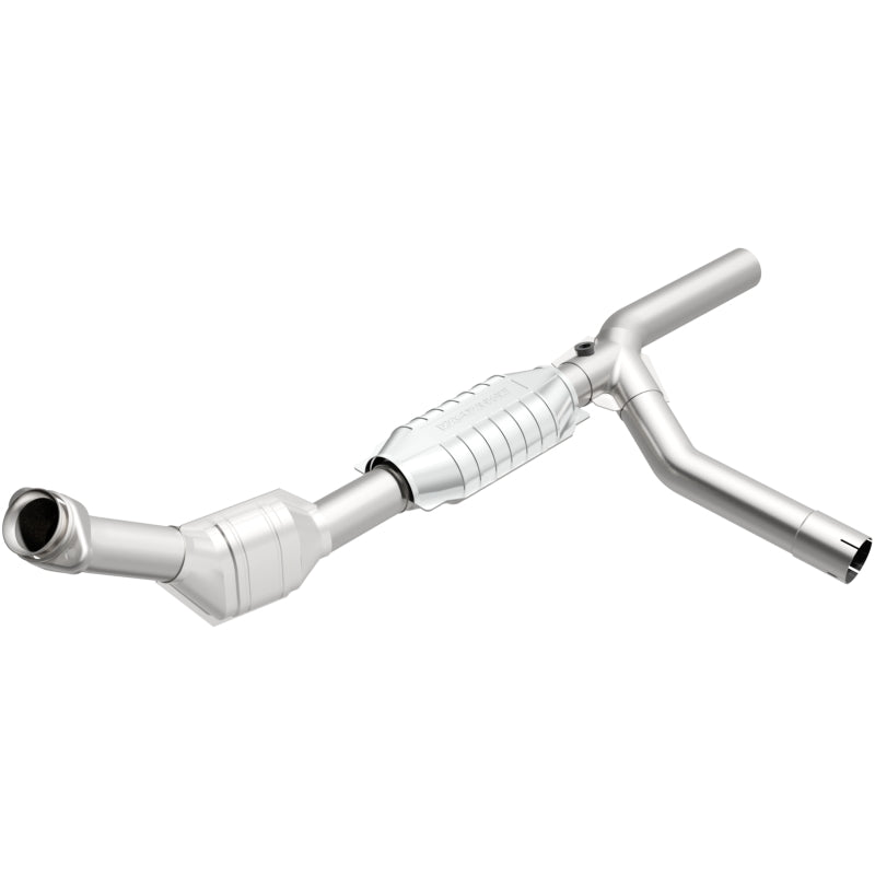 MagnaFlow HM Grade Federal/EPA Compliant Direct-Fit Catalytic Converter 93391 helps keep the check engine light off. DIY installation is easy with the proper tools (no cutting or welding required). With features including mandrel-bent tubing to eliminate flow restrictions and stainless steel construction to resist corrosion, you can have confidence in the quality of this catalytic converter. Using state-of-the-art 3D scanning systems in the design process, the MagnaFlow metrology department ensures this new part to fit and function like the original equipment. Designed to fit the 1997-1999 Ford E-150 Econoline and 1997-1999 Ford E-150 Econoline Club Wagon, this direct-fit catalytic converter also interchanges with OE part F7UZ-5E212-HA. This replacement part is designed to meet or exceed Federal emissions requirements set forth by the EPA, complying with legal standards for OBDII Federally registered vehicles with Federal/EPA Emission systems.