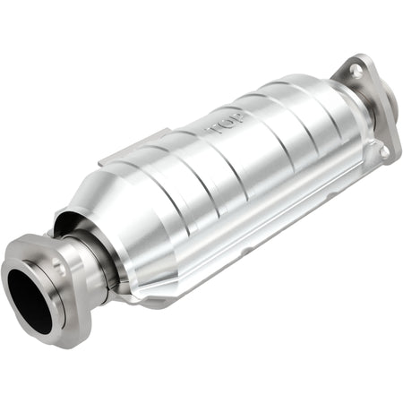 Keep the check engine light off with MagnaFlow HM Grade Federal/EPA Compliant Direct-Fit Catalytic Converter 23876. With features including free-flowing mandrel-bent tubing and highly corrosion resistant stainless steel construction, easily install this spun body converter yourself using the proper tools, no cutting or welding required. MagnaFlow's state-of-the-art metrology department uses the latest 3D scanning systems during research and development, so you can be confident that your new part will fit and function like the original equipment. By replicating the OE spun body design, the single laser fusion weld greatly reduces the possibility of a leak, and our compact, low-mass design also allows for greater thermal efficiency. Designed to fit the 1996-1998 Hyundai Elantra, 1995 Kia Sportage, and more, this direct-fit catalytic converter also interchanges with OE parts 28950-23070 and 0K01B-20600C, among others. This replacement part is designed to meet or exceed Federal emissions requirements set forth by the EPA, complying with legal standards for OBDII Federally registered vehicles with Federal/EPA Emission systems.