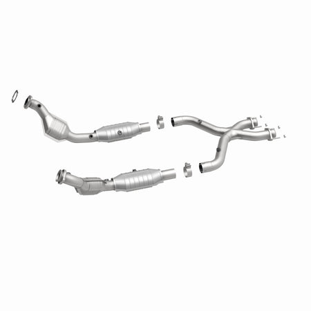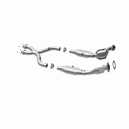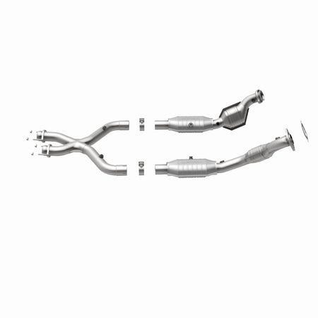 MagnaFlow HM Grade Federal/EPA Compliant Direct-Fit Catalytic Converter 93671 helps keep the check engine light off. DIY installation is easy with the proper tools (no cutting or welding required). With features including mandrel-bent tubing to eliminate flow restrictions and stainless steel construction to resist corrosion, you can have confidence in the quality of this catalytic converter. Using state-of-the-art 3D scanning systems in the design process, the MagnaFlow metrology department ensures this new part to fit and function like the original equipment. This direct-fit catalytic converter is designed specifically for the 1999-2004 Ford Mustang and interchanges with OE parts 2R3Z-5F250-DA and XR3Z-5F250-EGL, among others. Hardware is included to eliminate the hassle of working with corroded factory parts. This replacement part is designed to meet or exceed Federal emissions requirements set forth by the EPA, complying with legal standards for OBDII Federally registered vehicles with Federal/EPA Emission systems.