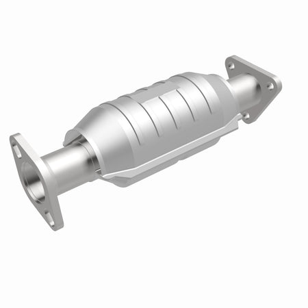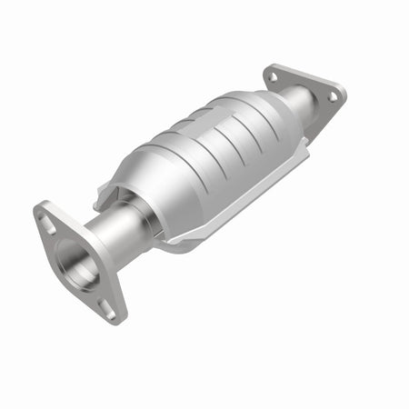 Keep the check engine light off with MagnaFlow HM Grade Federal/EPA Compliant Direct-Fit Catalytic Converter 23879. With features including free-flowing mandrel-bent tubing and highly corrosion resistant stainless steel construction, easily install this spun body converter yourself using the proper tools, no cutting or welding required. MagnaFlow's state-of-the-art metrology department uses the latest 3D scanning systems during research and development, so you can be confident that your new part will fit and function like the original equipment. By replicating the OE spun body design, the single laser fusion weld greatly reduces the possibility of a leak, and our compact, low-mass design also allows for greater thermal efficiency. This direct-fit catalytic converter is designed specifically for the 1995-1997 Hyundai Accent and interchanges with OE part 28950-22070. This replacement part is designed to meet or exceed Federal emissions requirements set forth by the EPA, complying with legal standards for OBDII Federally registered vehicles with Federal/EPA Emission systems.