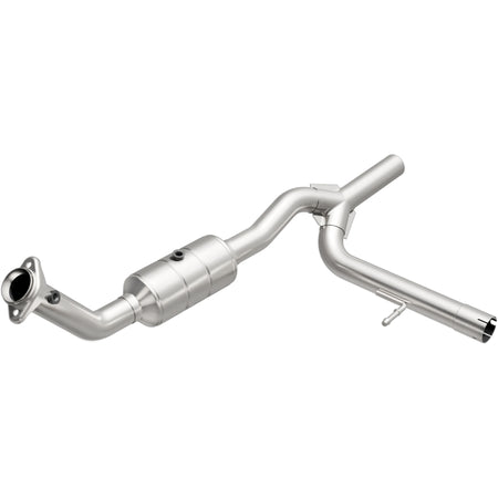 Keep the check engine light off with MagnaFlow HM Grade Federal/EPA Compliant Direct-Fit Catalytic Converter 93124. With features including free-flowing mandrel-bent tubing and highly corrosion resistant stainless steel construction, easily install this spun body converter yourself using the proper tools, no cutting or welding required. MagnaFlow's state-of-the-art metrology department uses the latest 3D scanning systems during research and development, so you can be confident that your new part will fit and function like the original equipment. By replicating the OE spun body design, the single laser fusion weld greatly reduces the possibility of a leak, and our compact, low-mass design also allows for greater thermal efficiency. This direct-fit catalytic converter is designed specifically for the 2004-2008 Ford F-150. This replacement part is designed to meet or exceed Federal emissions requirements set forth by the EPA, complying with legal standards for OBDII Federally registered vehicles with Federal/EPA Emission systems.