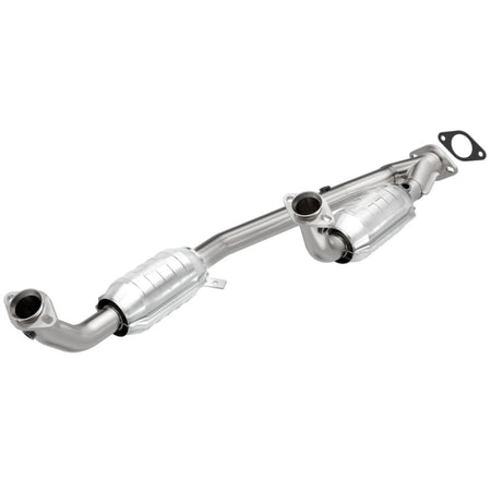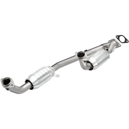 Keep the check engine light off with MagnaFlow HM Grade Federal/EPA Compliant Direct-Fit Catalytic Converter 23353. With features including free-flowing mandrel-bent tubing and highly corrosion resistant stainless steel construction, easily install this spun body converter yourself using the proper tools, no cutting or welding required. MagnaFlow's state-of-the-art metrology department uses the latest 3D scanning systems during research and development, so you can be confident that your new part will fit and function like the original equipment. By replicating the OE spun body design, the single laser fusion weld greatly reduces the possibility of a leak, and our compact, low-mass design also allows for greater thermal efficiency. This direct-fit catalytic converter is designed specifically for the 1995-1997 Ford Windstar and interchanges with OE parts F58Z-5F250-B and F58Z-5F250-C, among others. Avoid potential exhaust leaks by using the included gaskets to get a proper seal. This replacement part is designed to meet or exceed Federal emissions requirements set forth by the EPA, complying with legal standards for OBDII Federally registered vehicles with Federal/EPA Emission systems.