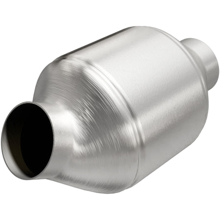 Keep the check engine light off with MagnaFlow OEM Grade Federal/EPA Compliant Universal Catalytic Converter 51776. The Universal design allows the part to fit a wide array of vehicles (cutting and welding required), and the stainless steel construction of this spun body catalytic converter is highly resistant to corrosion. The single laser fusion weld of the spun body greatly reduces the possibility of a leak, and our compact, low-mass design also allows for greater thermal efficiency. This replacement part is designed to meet or exceed Federal emissions requirements set forth by the EPA, complying with legal standards for OBDII Federally registered vehicles with California or Federal/EPA Emission systems.