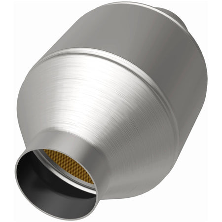 Keep the check engine light off with MagnaFlow HM Grade Federal/EPA Compliant Universal Catalytic Converter 60105. The Universal design allows the part to fit a wide array of vehicles (cutting and welding required), and the stainless steel construction of this spun body catalytic converter is highly resistant to corrosion. The single laser fusion weld of the spun body greatly reduces the possibility of a leak, and our compact, low-mass design also allows for greater thermal efficiency. This replacement part is designed to meet or exceed Federal emissions requirements set forth by the EPA, complying with legal standards for OBDII Federally registered vehicles with Federal/EPA Emission systems.