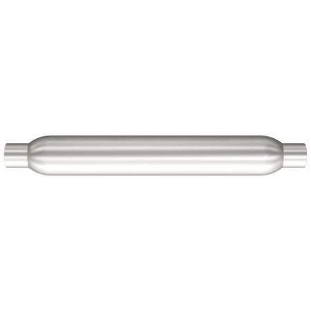 The MagnaFlow 3.5in. Round Glasspack Performance Exhaust Muffler 18134 enhances your ride with the deep, classic sound that glasspack mufflers are known for. The round muffler body features a free-flowing reversible straight-through 2/2in. diameter configuration and single stage packing with a satin finish. This weight-optimized glasspack muffler is engineered to bring out the inner hot rod in your ride with plenty of volume and dyno-proven performance, so please check to ensure compliance with local noise regulations. 18134 offers flexibility when it comes to installation thanks to its universal design, however, professional installation is recommended. Muffler 18134 is made of corrosion resistant aluminized steel and produced using CNC precision robotic manufacturing techniques, all backed by MagnaFlow's 90-day limited construction warranty.