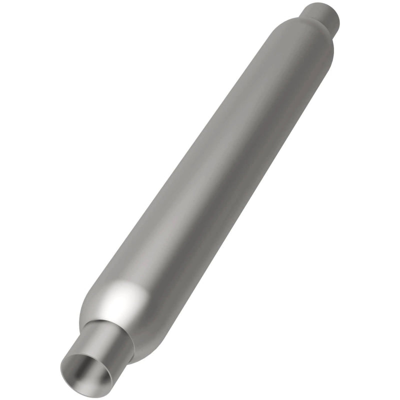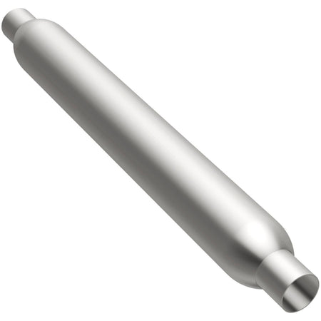The MagnaFlow 3.5in. Round Glasspack Performance Exhaust Muffler 18144 enhances your ride with the deep, classic sound that glasspack mufflers are known for. The round muffler body features a free-flowing reversible straight-through 2/2in. diameter configuration and single stage packing with a satin finish. This weight-optimized glasspack muffler is engineered to bring out the inner hot rod in your ride with plenty of volume and dyno-proven performance, so please check to ensure compliance with local noise regulations. 18144 offers flexibility when it comes to installation thanks to its universal design, however, professional installation is recommended. Muffler 18144 is made of corrosion resistant aluminized steel and produced using CNC precision robotic manufacturing techniques, all backed by MagnaFlow's 90-day limited construction warranty.