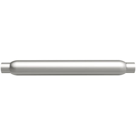 The MagnaFlow 3.5in. Round Glasspack Performance Exhaust Muffler 18145 enhances your ride with the deep, classic sound that glasspack mufflers are known for. The round muffler body features a free-flowing reversible straight-through 2.25/2.25in. diameter configuration and single stage packing with a satin finish. This weight-optimized glasspack muffler is engineered to bring out the inner hot rod in your ride with plenty of volume and dyno-proven performance, so please check to ensure compliance with local noise regulations. 18145 offers flexibility when it comes to installation thanks to its universal design, however, professional installation is recommended. Muffler 18145 is made of corrosion resistant aluminized steel and produced using CNC precision robotic manufacturing techniques, all backed by MagnaFlow's 90-day limited construction warranty.