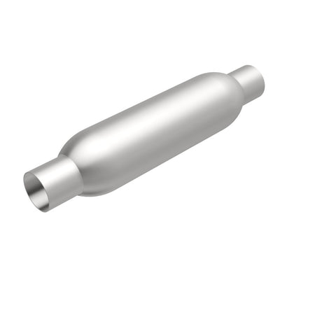 The MagnaFlow 3.5in. Round Glasspack Performance Exhaust Muffler 18114 enhances your ride with the deep, classic sound that glasspack mufflers are known for. The round muffler body features a free-flowing reversible straight-through 2/2in. diameter configuration and single stage packing with a satin finish. This weight-optimized glasspack muffler is engineered to bring out the inner hot rod in your ride with plenty of volume and dyno-proven performance, so please check to ensure compliance with local noise regulations. 18114 offers flexibility when it comes to installation thanks to its universal design, however, professional installation is recommended. Muffler 18114 is made of corrosion resistant aluminized steel and produced using CNC precision robotic manufacturing techniques, all backed by MagnaFlow's 90-day limited construction warranty.