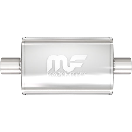 The MagnaFlow 4 X 9in. Oval Straight-Through Performance Exhaust Muffler 11245 is engineered to enhance your ride with a healthy helping of our signature exhaust sound and dyno-proven performance thanks to its free-flowing straight-through perforated stainless steel core wrapped in stainless steel mesh and acoustic fiber fill. The reversible, universal 2.25/2.25in. diameter inlet/outlet Straight-Through layout allows you to install it in whatever orientation and configuration you see fit. However, professional installation is highly recommended. Muffler 11245s weight-optimized 4x9x18in. oval-shaped body features a satin finish that elevates the overall aesthetics of your current exhaust setup. 11245 is made of durable, corrosion resistant stainless steel and produced using cutting-edge CNC precision robotic manufacturing techniques, all backed by MagnaFlow's limited lifetime construction warranty.