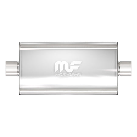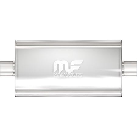 The MagnaFlow 5 X 11in. Oval Straight-Through Performance Exhaust Muffler 12576 is engineered to enhance your ride with a healthy helping of our signature exhaust sound and dyno-proven performance thanks to its free-flowing straight-through perforated stainless steel core wrapped in stainless steel mesh and acoustic fiber fill. The reversible, universal 2.5/2.5in. diameter inlet/outlet Straight-Through layout allows you to install it in whatever orientation and configuration you see fit. However, professional installation is highly recommended. Muffler 12576s weight-optimized 5x11x22in. oval-shaped body features a satin finish that elevates the overall aesthetics of your current exhaust setup. 12576 is made of durable, corrosion resistant stainless steel and produced using cutting-edge CNC precision robotic manufacturing techniques, all backed by MagnaFlow's limited lifetime construction warranty.
