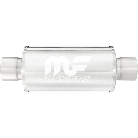 The MagnaFlow 6in. Round Straight-Through Performance Exhaust Muffler 14158 is engineered to enhance your vehicle with our signature exhaust sound and dyno-proven performance thanks to its free-flowing straight-through perforated stainless steel core wrapped in stainless steel mesh and acoustic fiber fill. The weight-optimized, reversible, universal 2.5/2.5in. diameter inlet/outlet layout and 6x6x6in. round body shape offer flexible installation options to fit the spacing requirements of your ride. Professional installation is highly recommended. 14158 features a premium brushed finish. Muffler 14158 is made of durable, corrosion resistant stainless steel and produced using advanced CNC precision robotic manufacturing techniques, all backed by MagnaFlow's limited lifetime warranty.