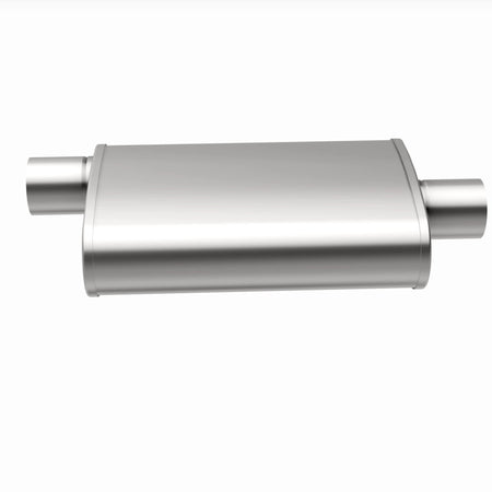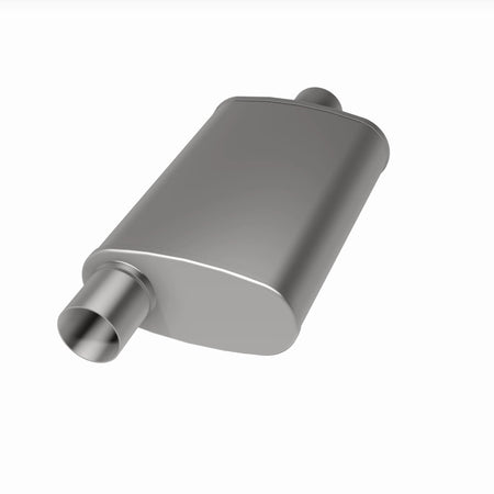 The MagnaFlow XL 4 X 9in. Oval Multi-Chamber Performance Exhaust Muffler 13216 features a straight-through, weight-optimized reversible design with a perforated stainless steel core featuring baffles and tuning gates, enabling it to deliver the powerful signature sound and dyno-proven performance that's made MagnaFlow a household name. Muffler 13216's oval-shaped, 4x9x14in. body and universal 2.5/2.5in. diameter inlet/outlet layout enables flexible installation options to match the spacing requirements of your vehicle. Professional installation is highly recommended. 13216 is produced using advanced CNC precision robotic manufacturing techniques and features durable, corrosion resistant stainless-steel construction, all backed by MagnaFlow's limited lifetime warranty.
