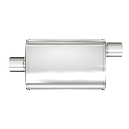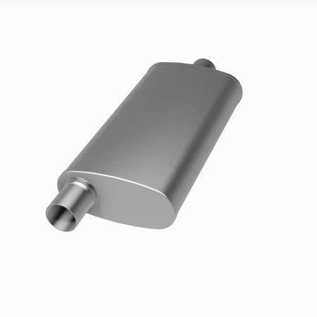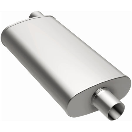 The MagnaFlow XL 4 X 9in. Oval Multi-Chamber Performance Exhaust Muffler 13256 features a straight-through, weight-optimized reversible design with a perforated stainless steel core featuring baffles and tuning gates, enabling it to deliver the powerful signature sound and dyno-proven performance that's made MagnaFlow a household name. Muffler 13256's oval-shaped, 4x9x18in. body and universal 2.5/2.5in. diameter inlet/outlet layout enables flexible installation options to match the spacing requirements of your vehicle. Professional installation is highly recommended. 13256 is produced using advanced CNC precision robotic manufacturing techniques and features durable, corrosion resistant stainless-steel construction, all backed by MagnaFlow's limited lifetime warranty.