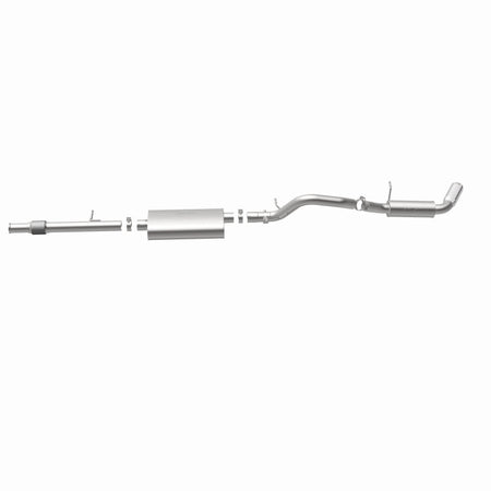 The MagnaFlow Street Series Cat-Back Performance Exhaust System 15356 brings out the personality of your SUV with our signature resonant, powerful engine tone and dyno-proven performance. Thanks to its fast-flowing, mandrel bent 3in. main piping and 2 Straight-Through mufflers ending in a Single Passenger Side Rear exit with 4in. Polished Welded-On Double Wall Angle Cut Rolled Edge tips, this SUV exhaust kit has the performance chops to match its sporty sound and appearance. Upgrade your ride to the next level with an exhaust that has the pipes to put other SUV's to shame. With this system your vehicle will be producing Moderate exterior and Mild interior sound levels while leaving other cars and trucks feeling envious at every stoplight. Exhaust kit 15356 features a cat-back layout that replaces your ride's stock exhaust components from near the catalytic converter on back. Extensive 3D scanning during development has resulted in a direct-fit design that you can easily install yourself. 15356 is produced using CNC precision robotic manufacturing techniques and is backed by MagnaFlow's 1-year limited finish warranty and limited lifetime construction warranty.