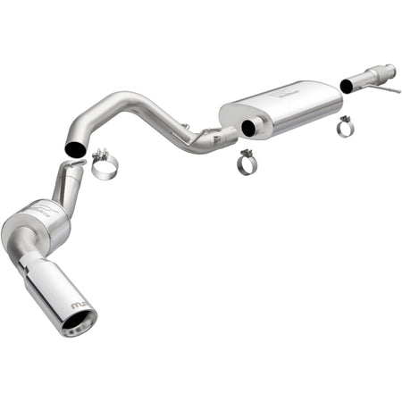 The MagnaFlow Street Series Cat-Back Performance Exhaust System 15355 brings out the personality of your SUV with our signature resonant, powerful engine tone and dyno-proven performance. Thanks to its fast-flowing, mandrel bent 3in. main piping and 2 Straight-Through mufflers ending in a Single Passenger Side Rear exit with 4in. Polished Welded-On Double Wall Angle Cut Rolled Edge tips, this SUV exhaust kit has the performance chops to match its sporty sound and appearance. Upgrade your ride to the next level with an exhaust that has the pipes to put other SUV's to shame. With this system your vehicle will be producing Moderate exterior and Mild interior sound levels while leaving other cars and trucks feeling envious at every stoplight. Exhaust kit 15355 features a cat-back layout that replaces your ride's stock exhaust components from near the catalytic converter on back. Extensive 3D scanning during development has resulted in a direct-fit design that you can easily install yourself. 15355 is produced using CNC precision robotic manufacturing techniques and is backed by MagnaFlow's 1-year limited finish warranty and limited lifetime construction warranty.