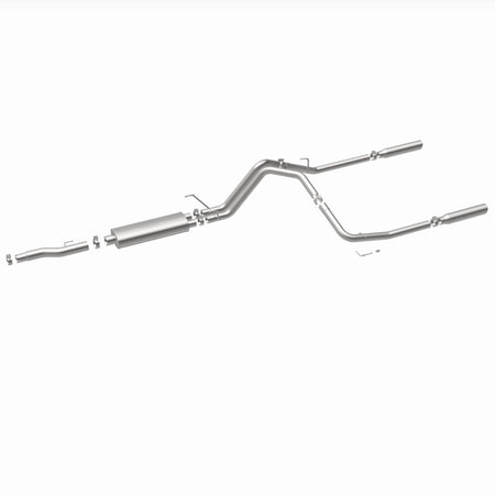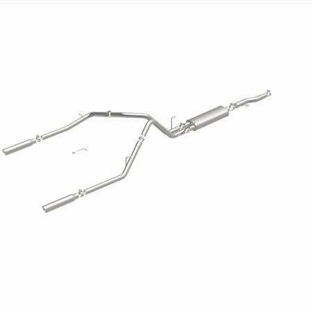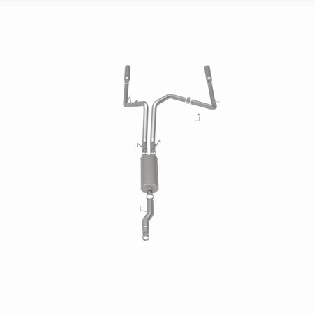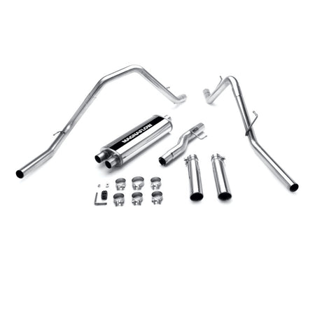 The MagnaFlow 2002-2003 Dodge Ram 1500 Street Series Cat-Back Performance Exhaust System brings out the personality of your 4.7L, 5.9L 2002-2003 Dodge Ram 1500 with our signature resonant, powerful engine tone and dyno-proven performance. Thanks to its fast-flowing, mandrel bent 3in. main piping and 1 Straight-Through mufflers ending in a Dual Split Rear exit with 3.5in. Polished Clamp-On Single Wall Angle Cut Rolled Edge tips, this Dodge Ram 1500 exhaust kit has the performance chops to match its sporty sound and appearance. Upgrade your ride to the next level with an exhaust that has the pipes to put other Dodge Ram 1500's to shame. With this system your vehicle will be producing Aggressive exterior and Moderate interior sound levels while leaving other cars and trucks feeling envious at every stoplight. Exhaust kit 15813 features a cat-back layout that replaces your ride's stock exhaust components from near the catalytic converter on back. Extensive 3D scanning during development has resulted in a direct-fit design that you can easily install yourself. 15813 is produced using CNC precision robotic manufacturing techniques and is backed by MagnaFlow's 1-year limited finish warranty and limited lifetime construction warranty.