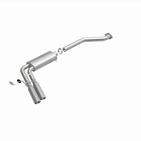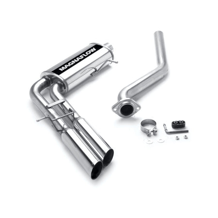 The MagnaFlow Street Series Cat-Back Performance Exhaust System 15842 brings out the personality of your Truck with our signature resonant, powerful engine tone and dyno-proven performance. Thanks to its fast-flowing, mandrel bent 3in. main piping and 1 Straight-Through mufflers ending in a Dual Same Side Before Passenger Rear Tire exit with 3.5in. Polished Welded-On Single Wall Angle Cut Cut Edge tips, this Truck exhaust kit has the performance chops to match its sporty sound and appearance. Upgrade your ride to the next level with an exhaust that has the pipes to put other Truck's to shame. With this system your vehicle will be producing Very Aggressive exterior and Aggressive interior sound levels while leaving other cars and trucks feeling envious at every stoplight. Exhaust kit 15842 features a cat-back layout that replaces your ride's stock exhaust components from near the catalytic converter on back. Extensive 3D scanning during development has resulted in a direct-fit design that you can easily install yourself. 15842 is produced using CNC precision robotic manufacturing techniques and is backed by MagnaFlow's 1-year limited finish warranty and limited lifetime construction warranty.