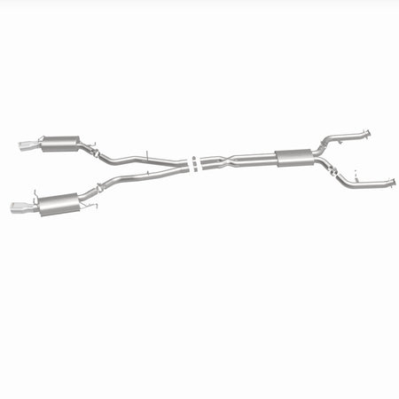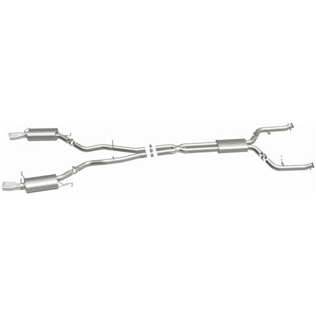 The MagnaFlow Touring Series Cat-Back Performance Exhaust System 16560 is the perfect partner for your 4.4L, 4.8L 2004-2010 BMW to take on a grand tour or a weekend cruise thanks to the powerful, resonant exhaust note and dyno-proven performance it brings to the table. This durable, corrosion resistant stainless steel exhaust kit is engineered to conquer the miles with ease while enhancing your driving experience with Moderate exterior and Mild interior sound levels generated through its fast-flowing, mandrel bent 2.5in. main piping and 3 Straight-Through muffler that terminate in a Dual Split Rear exit with 3.25 x 4.75in. Polished Welded-On Double Wall Straight Cut Rolled Edge tips. 16560 features a cat-back layout design to replace your import's stock exhaust components from the catalytic converter on back. This BMW exhaust system is compatible with 2004-2010 engines. The use of extensive 3D scans made during the development process has resulted in an easy-to-install, direct-fit design that fits your BMW like a glove. 16560 is produced using CNC precision robotic manufacturing techniques and is backed by MagnaFlow's limited lifetime construction warranty.