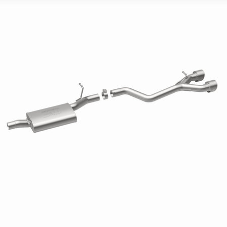 The MagnaFlow 2008 Volkswagen R32 Sport Series Cat-Back Performance Exhaust System enhances your 3.2L 2008-2008 Volkswagen R32 with an aggressive character that is sure to help you stand out from the other Volkswagen R32 you encounter on the street. With its 2.5in. diameter fast-flowing mandrel bent main piping that passes through 1 Straight-Through mufflers before ending in a Dual Center Rear exit with 4in. Polished Welded-On Double Wall Angle Cut Folded Edge tips, this dyno-proven Volkswagen R32 exhaust system refuses to be ignored. As such, 16502 is tuned to produce our powerful, resonant signature exhaust note at Aggressive exterior and Moderate interior sound levels, so please check to ensure compliance with local noise regulations. The system's cat-back design replaces all your import's stock exhaust components from the catalytic converter on back. Extensive 3D scanning and CNC precision robotic manufacturing techniques are used to ensure that your exhaust system fits perfectly with just a simple do-it-yourself installation process. The durable, corrosion resistant stainless steel construction of 16502 is backed by MagnaFlow's limited lifetime warranty.
