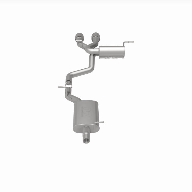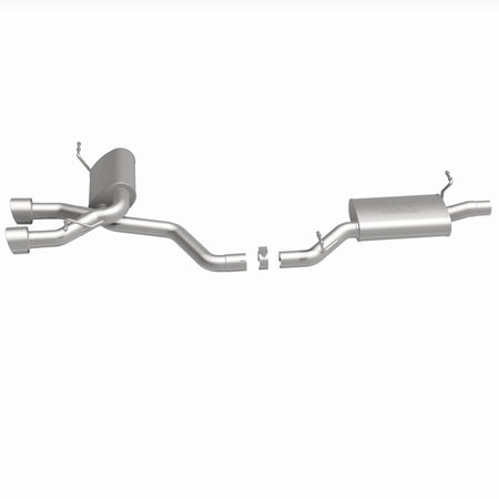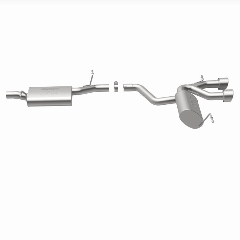 The MagnaFlow 2008 Volkswagen R32 Sport Series Cat-Back Performance Exhaust System enhances your 3.2L 2008-2008 Volkswagen R32 with an aggressive character that is sure to help you stand out from the other Volkswagen R32 you encounter on the street. With its 2.5in. diameter fast-flowing mandrel bent main piping that passes through 2 Straight-Through mufflers before ending in a Dual Center Rear exit with 4in. Polished Welded-On Double Wall Angle Cut Folded Edge tips, this dyno-proven Volkswagen R32 exhaust system refuses to be ignored. As such, 16501 is tuned to produce our powerful, resonant signature exhaust note at Aggressive exterior and Moderate interior sound levels, so please check to ensure compliance with local noise regulations. The system's cat-back design replaces all your import's stock exhaust components from the catalytic converter on back. Extensive 3D scanning and CNC precision robotic manufacturing techniques are used to ensure that your exhaust system fits perfectly with just a simple do-it-yourself installation process. The durable, corrosion resistant stainless steel construction of 16501 is backed by MagnaFlow's limited lifetime warranty.