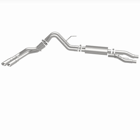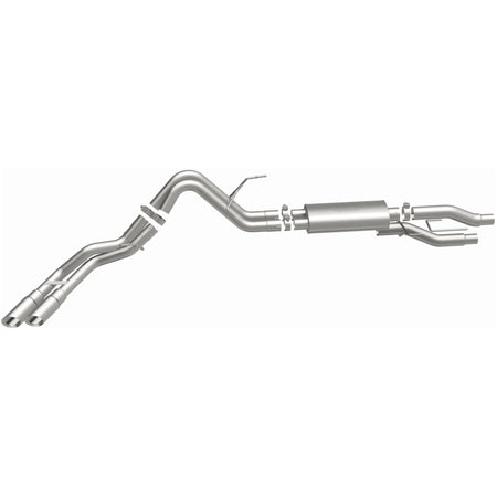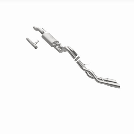 The MagnaFlow Street Series Cat-Back Performance Exhaust System 16523 brings out the personality of your Truck with our signature resonant, powerful engine tone and dyno-proven performance. Thanks to its fast-flowing, mandrel bent 3in. main piping and 1 Straight-Through mufflers ending in a Dual Same Side Behind Passenger Rear Tire exit with 3.5in. Polished Welded-On Double Wall Angle Cut Folded Edge tips, this Truck exhaust kit has the performance chops to match its sporty sound and appearance. Upgrade your ride to the next level with an exhaust that has the pipes to put other Truck's to shame. With this system your vehicle will be producing Aggressive exterior and Moderate interior sound levels while leaving other cars and trucks feeling envious at every stoplight. Exhaust kit 16523 features a cat-back layout that replaces your ride's stock exhaust components from near the catalytic converter on back. Extensive 3D scanning during development has resulted in a direct-fit design that you can easily install yourself. 16523 is produced using CNC precision robotic manufacturing techniques and is backed by MagnaFlow's 1-year limited finish warranty and limited lifetime construction warranty.