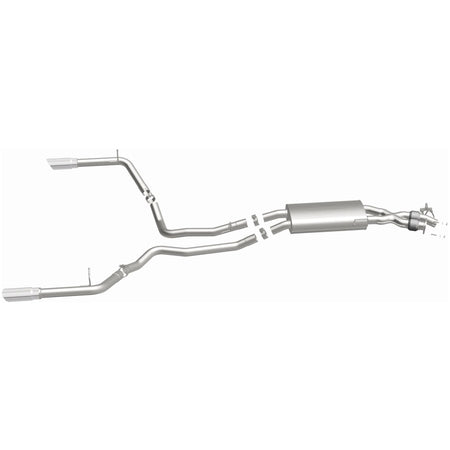 The MagnaFlow 2010-2013 Land Rover Range Rover Sport Touring Series Cat-Back Performance Exhaust System is the perfect partner for your 5.0L 2010-2013 Land Rover Range Rover Sport to take on a grand tour or a weekend cruise thanks to the powerful, resonant exhaust note and dyno-proven performance it brings to the table. This durable, corrosion resistant stainless steel exhaust kit is engineered to conquer the miles with ease while enhancing your driving experience with Moderate exterior and Mild interior sound levels generated through its fast-flowing, mandrel bent 2.5in. main piping and 1 Straight-Through muffler that terminate in a Dual Split Rear exit with 3.5in. Polished Welded-On Double Wall Angle Cut Folded Edge tips. 15579 features a cat-back layout design to replace your import's stock exhaust components from the catalytic converter on back. This Land Rover Range Rover Sport exhaust system is compatible with 2010-2013 engines. The use of extensive 3D scans made during the development process has resulted in an easy-to-install, direct-fit design that fits your Land Rover Range Rover Sport like a glove. 15579 is produced using CNC precision robotic manufacturing techniques and is backed by MagnaFlow's limited lifetime construction warranty.
