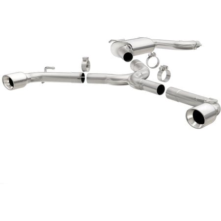 The MagnaFlow 2010-2014 Volkswagen GTI Sport Series Cat-Back Performance Exhaust System enhances your 2.0L 2010-2014 Volkswagen GTI with an aggressive character that is sure to help you stand out from the other Volkswagen GTI you encounter on the street. With its 3in. diameter fast-flowing mandrel bent main piping that passes through 1 Straight-Through mufflers before ending in a Dual Split Rear exit with 4in. Polished Welded-On Double Wall Angle Cut Rolled Edge tips, this dyno-proven Volkswagen GTI exhaust system refuses to be ignored. As such, 15521 is tuned to produce our powerful, resonant signature exhaust note at Aggressive exterior and Moderate interior sound levels, so please check to ensure compliance with local noise regulations. The system's cat-back design replaces all your import's stock exhaust components from the catalytic converter on back. Extensive 3D scanning and CNC precision robotic manufacturing techniques are used to ensure that your exhaust system fits perfectly with just a simple do-it-yourself installation process. The durable, corrosion resistant stainless steel construction of 15521 is backed by MagnaFlow's limited lifetime warranty.