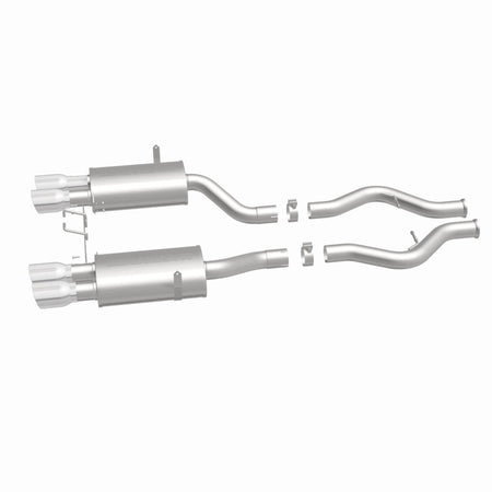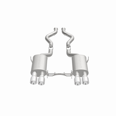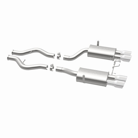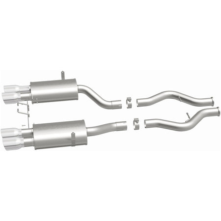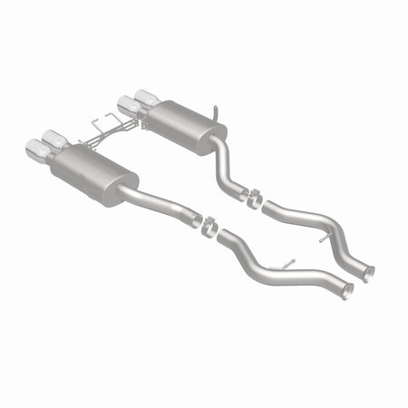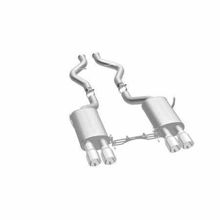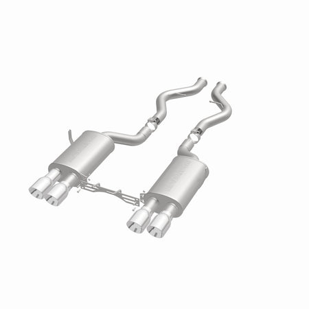The MagnaFlow 2008-2013 BMW M3 Touring Series Cat-Back Performance Exhaust System is the perfect partner for your 4.0L 2008-2013 BMW M3 to take on a grand tour or a weekend cruise thanks to the powerful, resonant exhaust note and dyno-proven performance it brings to the table. This durable, corrosion resistant stainless steel exhaust kit is engineered to conquer the miles with ease while enhancing your driving experience with Moderate exterior and Mild interior sound levels generated through its fast-flowing, mandrel bent 2.5in. main piping and 2 Straight-Through muffler that terminate in a Quad Split Rear exit with 3.5in. Polished Welded-On Double Wall Angle Cut Folded Edge tips. 15544 features a cat-back layout design to replace your import's stock exhaust components from the catalytic converter on back. This BMW M3 exhaust system is compatible with 2008-2013 engines. The use of extensive 3D scans made during the development process has resulted in an easy-to-install, direct-fit design that fits your BMW M3 like a glove. 15544 is produced using CNC precision robotic manufacturing techniques and is backed by MagnaFlow's limited lifetime construction warranty.