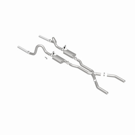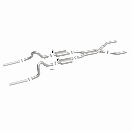 The MagnaFlow 1964-1966 Ford Mustang Street Series Crossmember-Back Performance Exhaust System brings enhanced engine sound and dyno-proven performance to your 2.8L, 3.3L, 4.3L, 4.7L 1964-1966 Ford Mustang with a healthy helping of our deep, resonant signature exhaust note at Aggressive exterior and Moderate interior sound levels. Thanks to its durable, corrosion resistant stainless steel design, this Ford Mustang exhaust system will handle whatever tarmac you decide to leave your mark on. This performance exhaust kit features a crossmember-back layout designed to replace your Ford Mustang's exhaust system from the crossmember on back. With its fast-flowing, mandrel bent 3in. main piping and 2 Straight-Through mufflers ending in a Dual Split Rear exit that you can enhance with tips of your choosing, your muscle car will be sounding as awesome as it looks. Extensive 3D scanning during development has resulted in a direct-fit design that you can easily install yourself. 15817 is produced using CNC precision robotic manufacturing techniques and is backed by MagnaFlow's limited lifetime construction warranty.