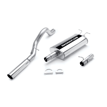 The MagnaFlow 2000-2003 Dodge Durango Street Series Cat-Back Performance Exhaust System brings out the personality of your 4.7L, 5.9L 2000-2003 Dodge Durango with our signature resonant, powerful engine tone and dyno-proven performance. Thanks to its fast-flowing, mandrel bent 3in. main piping and 1 Straight-Through mufflers ending in a Single Straight Passenger Side Rear exit with 3.5in. Polished Welded-On Single Wall Angle Cut Cut Edge tips, this Dodge Durango exhaust kit has the performance chops to match its sporty sound and appearance. Upgrade your ride to the next level with an exhaust that has the pipes to put other Dodge Durango's to shame. With this system your vehicle will be producing Moderate exterior and Mild interior sound levels while leaving other cars and trucks feeling envious at every stoplight. Exhaust kit 15659 features a cat-back layout that replaces your ride's stock exhaust components from near the catalytic converter on back. Extensive 3D scanning during development has resulted in a direct-fit design that you can easily install yourself. 15659 is produced using CNC precision robotic manufacturing techniques and is backed by MagnaFlow's 1-year limited finish warranty and limited lifetime construction warranty.