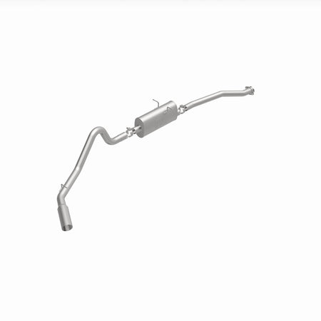 The MagnaFlow Street Series Cat-Back Performance Exhaust System 15679 brings out the personality of your Truck with our signature resonant, powerful engine tone and dyno-proven performance. Thanks to its fast-flowing, mandrel bent 2.5in. main piping and 1 Straight-Through mufflers ending in a Single Passenger Side Rear exit with 3.5in. Polished Welded-On Single Wall Angle Cut Cut Edge tips, this Truck exhaust kit has the performance chops to match its sporty sound and appearance. Upgrade your ride to the next level with an exhaust that has the pipes to put other Truck's to shame. With this system your vehicle will be producing Moderate exterior and Mild interior sound levels while leaving other cars and trucks feeling envious at every stoplight. Exhaust kit 15679 features a cat-back layout that replaces your ride's stock exhaust components from near the catalytic converter on back. Extensive 3D scanning during development has resulted in a direct-fit design that you can easily install yourself. 15679 is produced using CNC precision robotic manufacturing techniques and is backed by MagnaFlow's 1-year limited finish warranty and limited lifetime construction warranty.