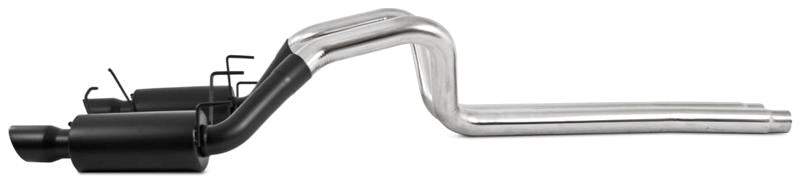 • Armor BLK Cat Back Exhaust System; 3 in.; Incl. Ext. Pipes/Mufflers/Hardware/4 in. Outlet Diameter Tips; Dual Split Rear Exit; Street Version; Black Coated;
