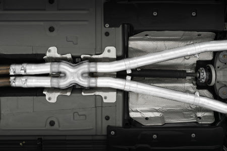 • 3in. Cat-Back. Dual Rear Exit. Race Version. Aluminized Steel. Quad Tips.