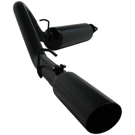 • Armor BLK Cat Back Exhaust System; 2.5 in.; Incl. Muffler/Tailpipe/Hardware/3.5 in. OD Tip; Single Side Exit; Black Coated;