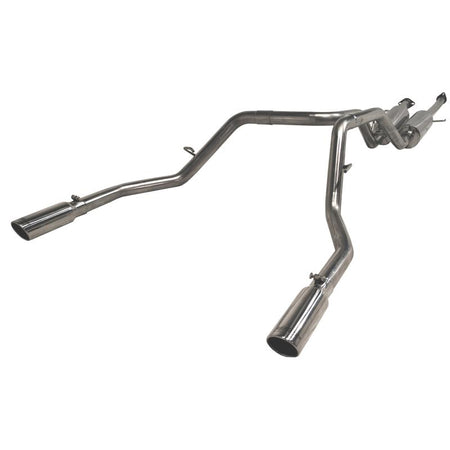 • Armor Plus Cat Back Exhaust System; 2.5 in.; Incl. Front Pipes/Mufflers/Over Axle Pipes/Tailpipes/Hardware/3.5 in. OD Tips; Dual Split Rear Exit; T409 Stainless Steel;