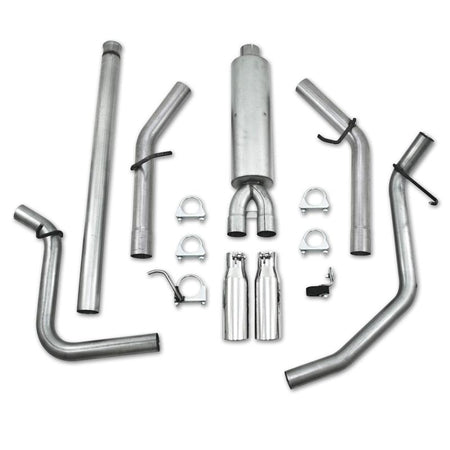 • Armor Lite Cat Back Exhaust System; 2.5 in.; Incl. Ext. Pipe/Muffler/Over Axle Pipes/Tailpipes/Hardware/3.5 in. OD Tip; Dual Split Side Exit; Aluminized;