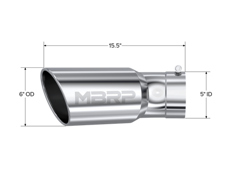 MBRP Universal Tip 6in OD 5in Inlet 15.5in Length 30 Deg Bend Angled Rolled End T304