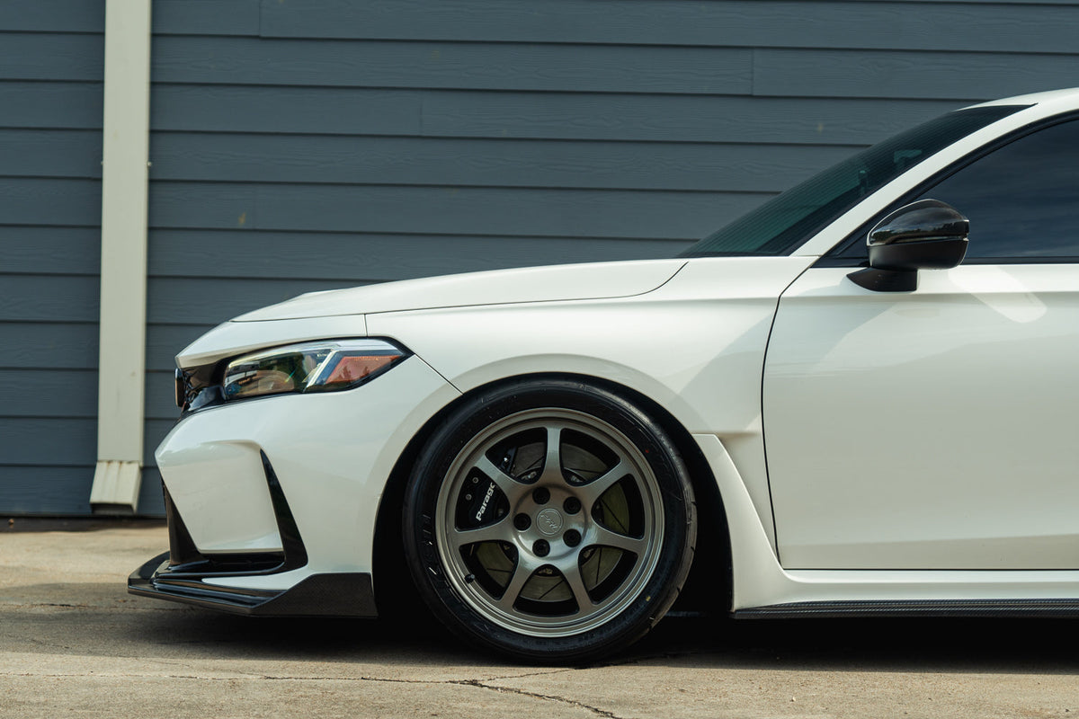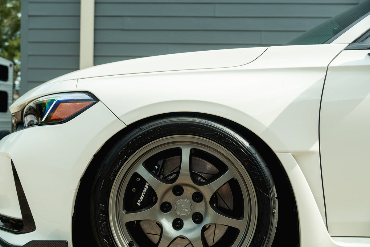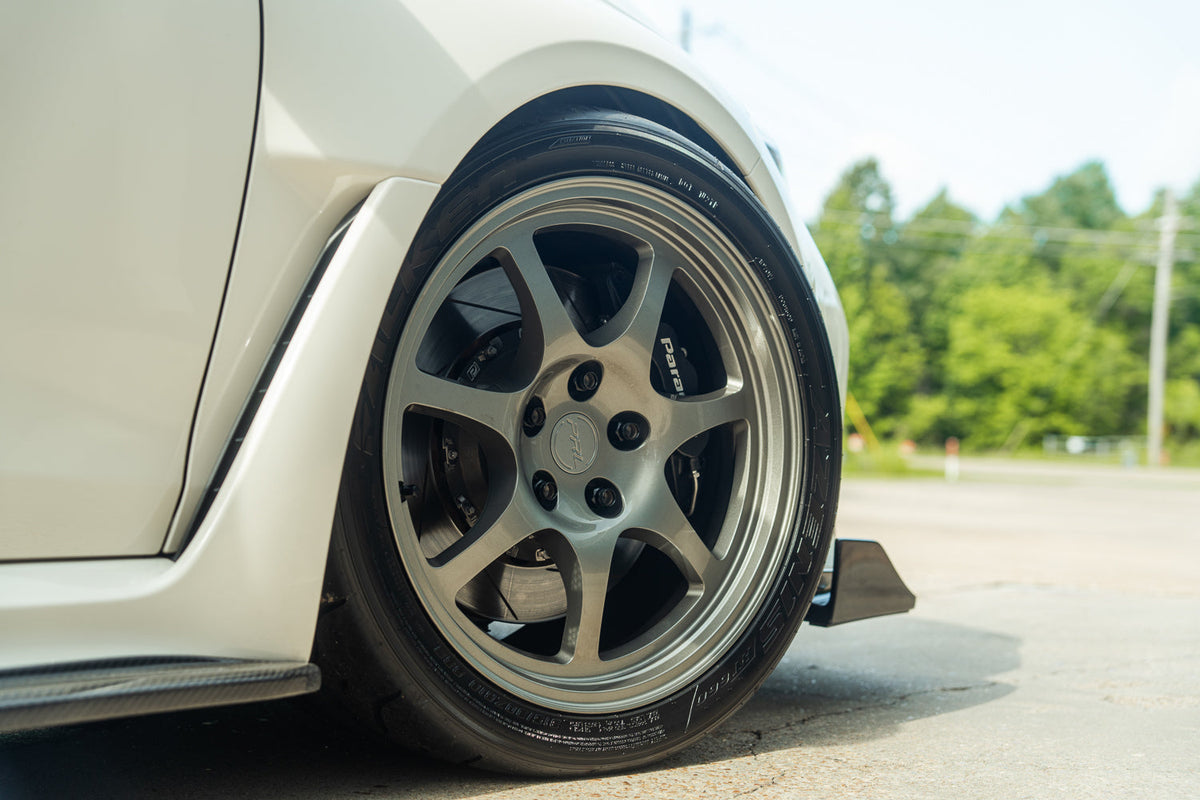 Currently available in Washi Grey, White, Bronze, or Polished Aluminum, this 7-spoke, 5x120 design is simple and perfectly complements the design language of these modern chassis. The increase from 15" to 18" allows for a wider selection of performance tire options, not to mention is a necessity to clear the monstrous Brembo brakes that come on the FK8 and FL5 Type R's from the factory.