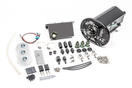 In-tank fuel hanger surge tank for the Mazda RX-7 (FD generation). Can be set up with multiple pumps. Designed to eliminate any chance of fuel pump starvation during aggressive driving. Can be used with factory or aftermarket fuel lines. See website for more details. Fuel pumps sold separately.