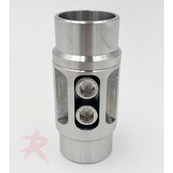 The new design is 4.3 oz lighter per assembly! Tube coupler/interlocks for 1.625″ (1 5/8″) diameter tube with .083″ thickness. This size tubing is mandated in most NHRA Chromoly cage work and is a popular size of tubing for drag racing oriented shops.