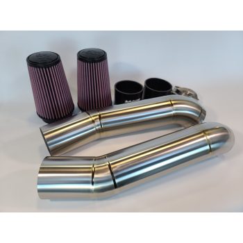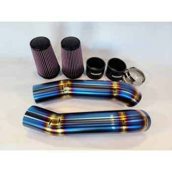 These intakes are made from 3.5″ mandrel bent titanium tubing for the smoothest flow and cleanest aesthetic. These are available as MAF-less only, for Speed Density tuning. Available in raw and burnt finishes!